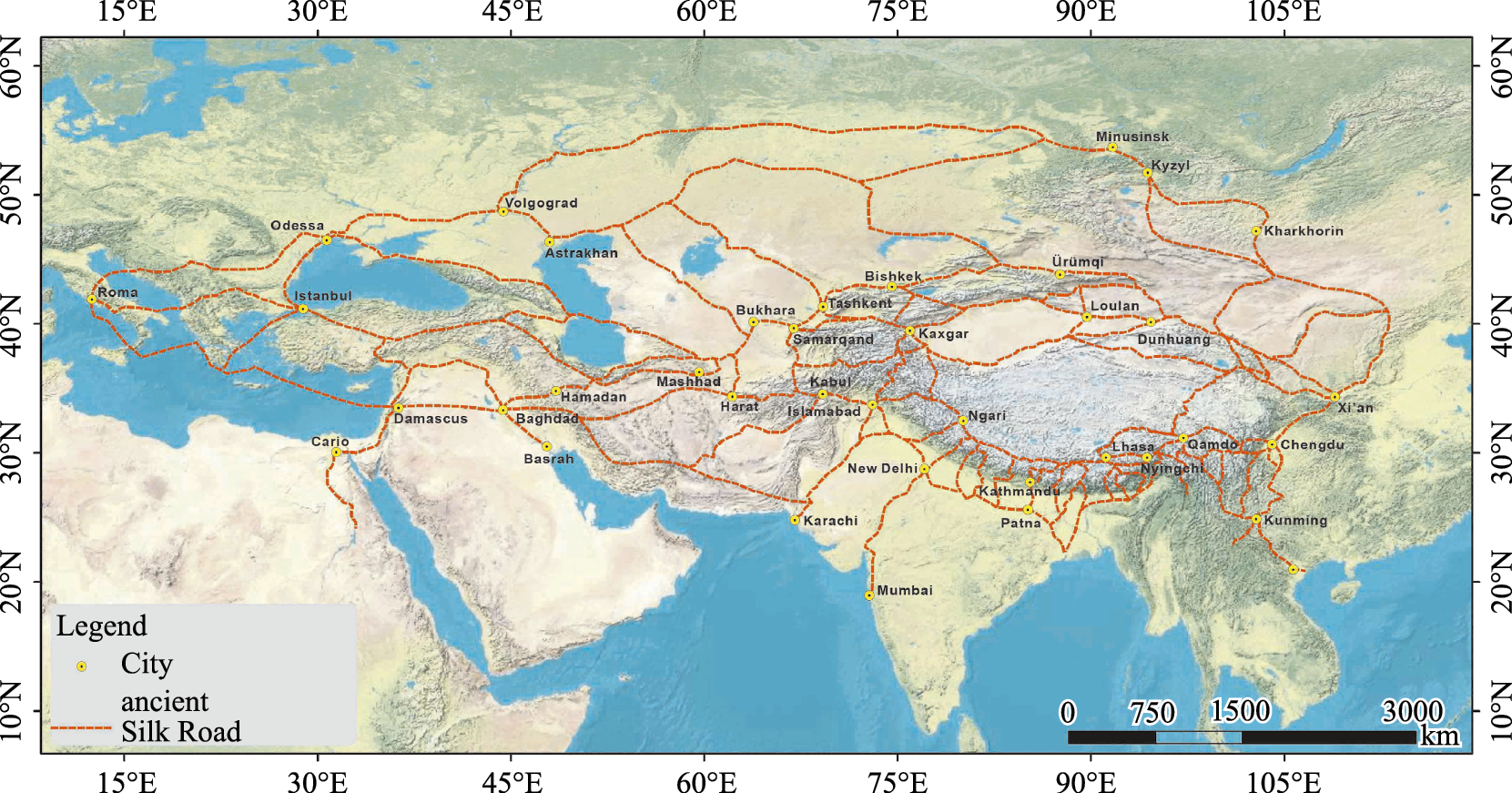 UNESCO Silk Roads Programme. Interactive map of the cities along the Silk Roads. https://en.unesco.org/silkroad/silkroad-interactive-map (accessed on August 2025).