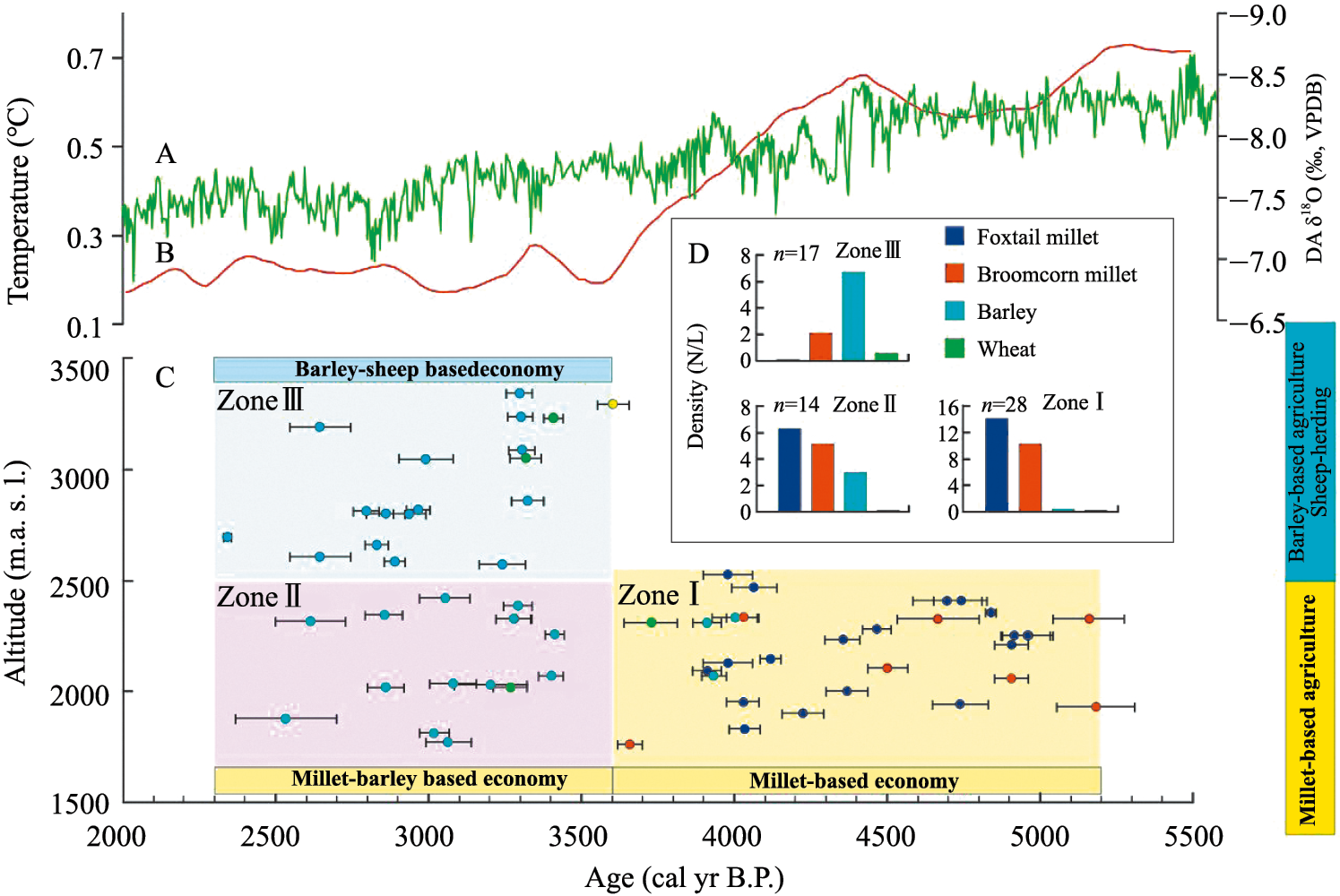 Chen, F., Dong, G., Zhang, D. et al., 2015. Agriculture facilitated permanent human occupation of the Tibetan Plateau after 3600 BP. Science 347(6219), 248-250.