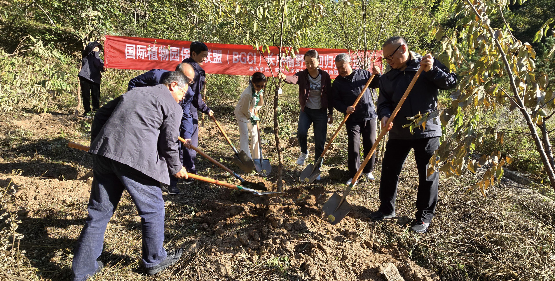 图3-80 国家林业和草原局野生动植物保护司副司长张德辉(左二)调研沈阳国家植物园筹建工作