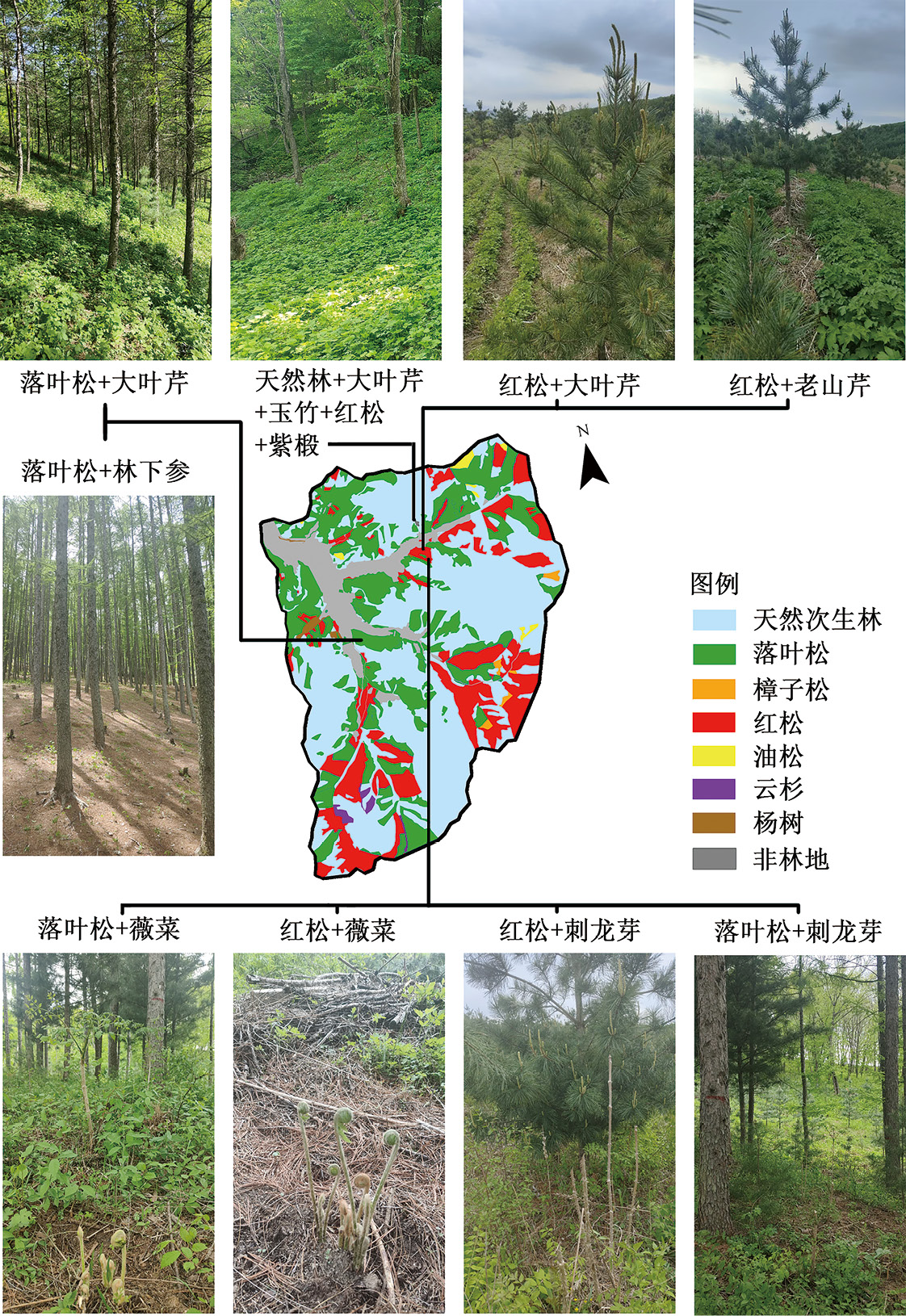 1)何兴元研究员主持的国家重点研发计划项目“东北森林生态产品供给能力提升技术及示范”,有序开展试验研究和技术示范,在机制研究、生态功能提升技术、物质性生态产品供给能力提升以及协同提升技术研发方面均取得一定的进展,主要体现在以下三方面。①初步阐明了东北森林生态产品形成和维持机制,评估了生态产品恢复潜力技术体系;揭示了落叶松人工林发育过程中植物多样性和土壤养分增加进而提升人工林生态系统多重功能的重要机制;阐明了天然次生林菌根、土壤矿物驱动的多功能机制,为东北森林的生态功能提升奠定了坚实基础。②突破了生态系统多功能、生态产品供给能力协同提升关键技术,创新了东北森林带生态屏障功能优化技术,构建了东北温带次生林水源涵养功能提升技术体系及优化模式,研发了基于落叶松快速成苗的寒温带天然次生林多功能提升关键技术,创建了以生态轮伐期理论为核心的落叶松多功能提升技术。③创建了生态修复与生态培育融合、屏障功能增值增效与生态产品供给融合的可持续发展范式,选育了系列植物新品种并研发了配套繁育、复合生态培育技术模式,创新了多功能红松林构建、林下老参地土壤再利用及修复技术体系,研发了坚果全资源化利用工艺并转化,建立了协同提升技术模式并在流域尺度上开展了集成示范(图3-85)。相关技术在东北三大林区内示范推广1608.6hm2。