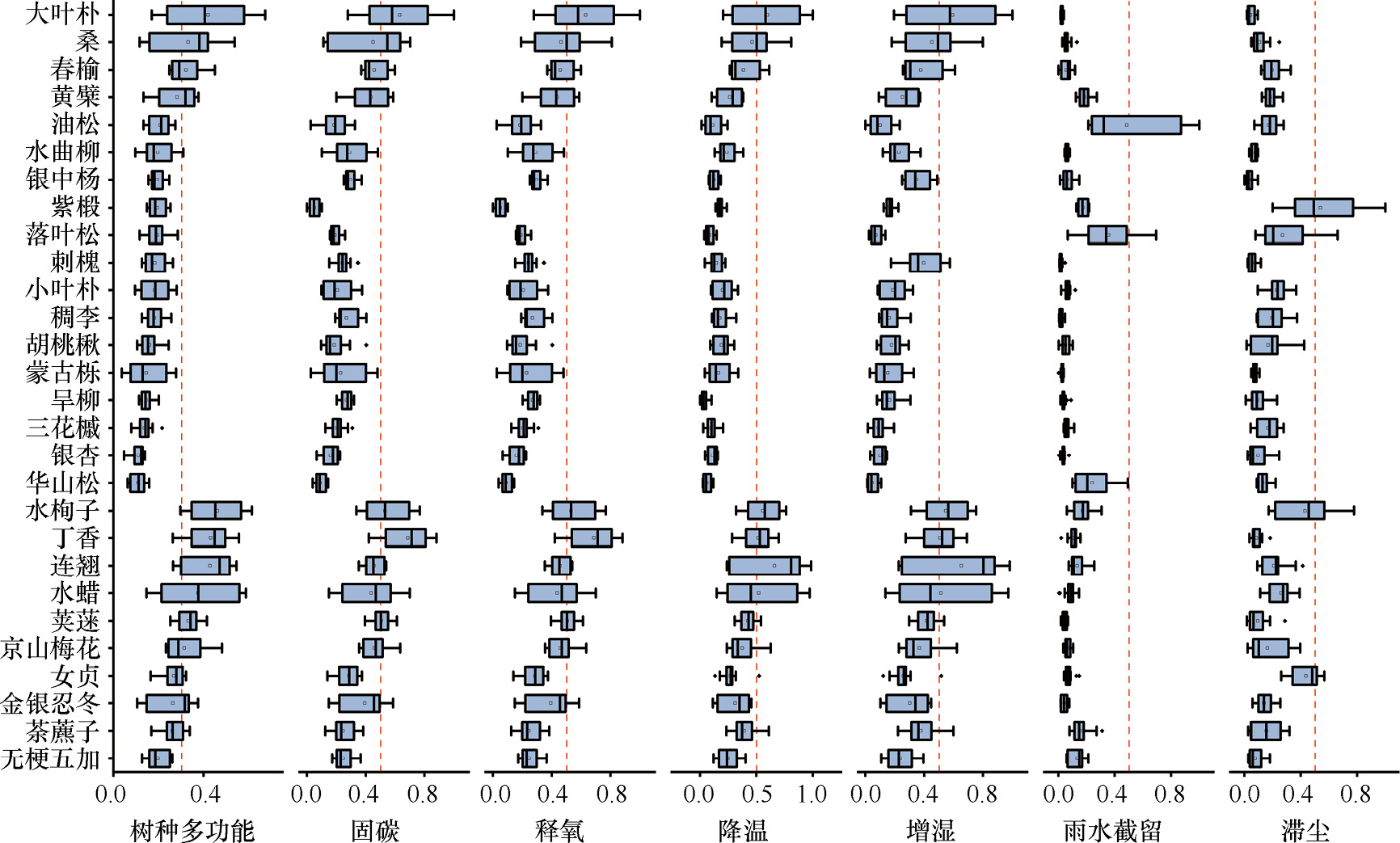 图3-87 城市不同树种多功能强弱比较