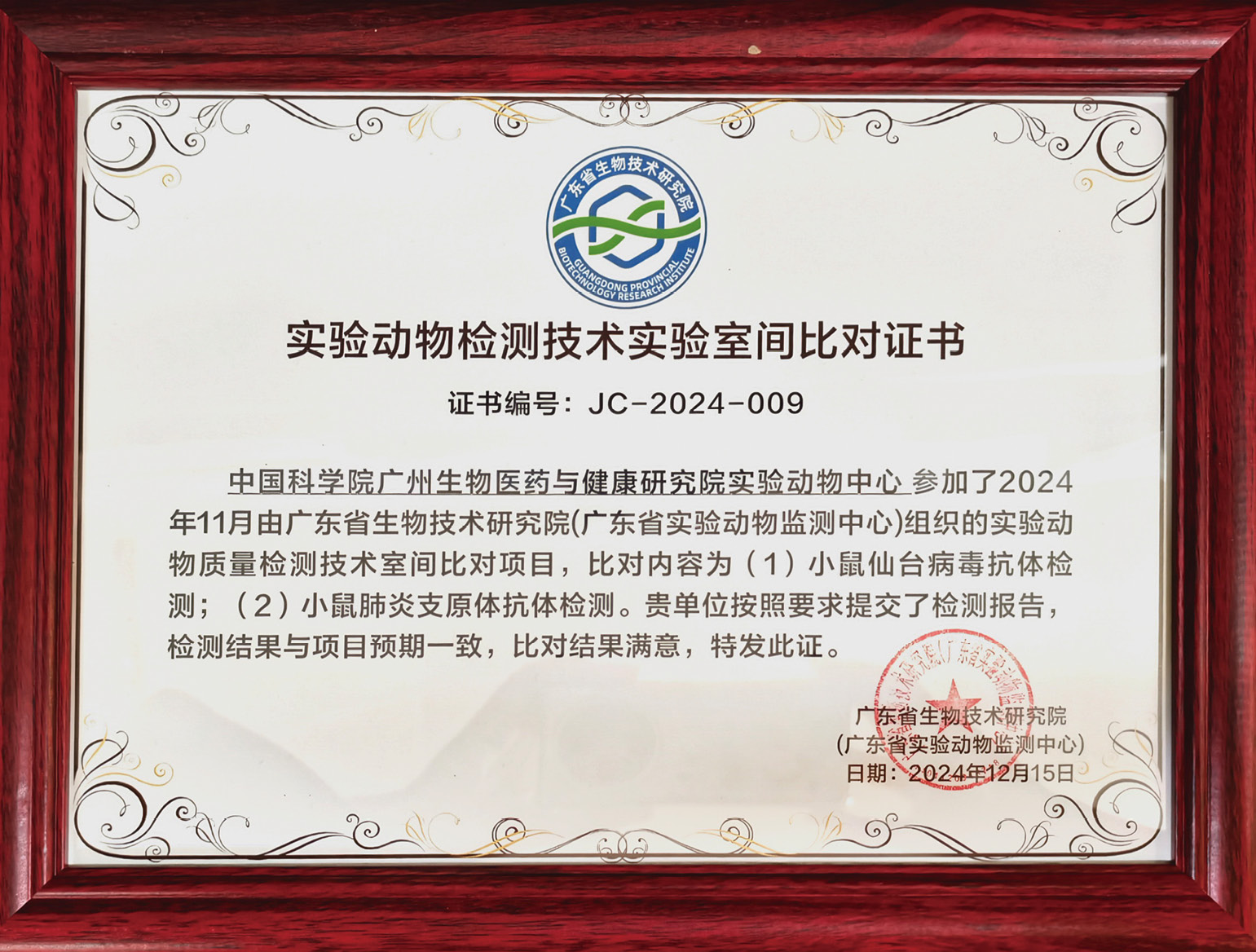2024年度为各研究课题提供小鼠9.52万只、大鼠1.21万只、豚鼠56只、兔15只、地鼠56只、犬133只。