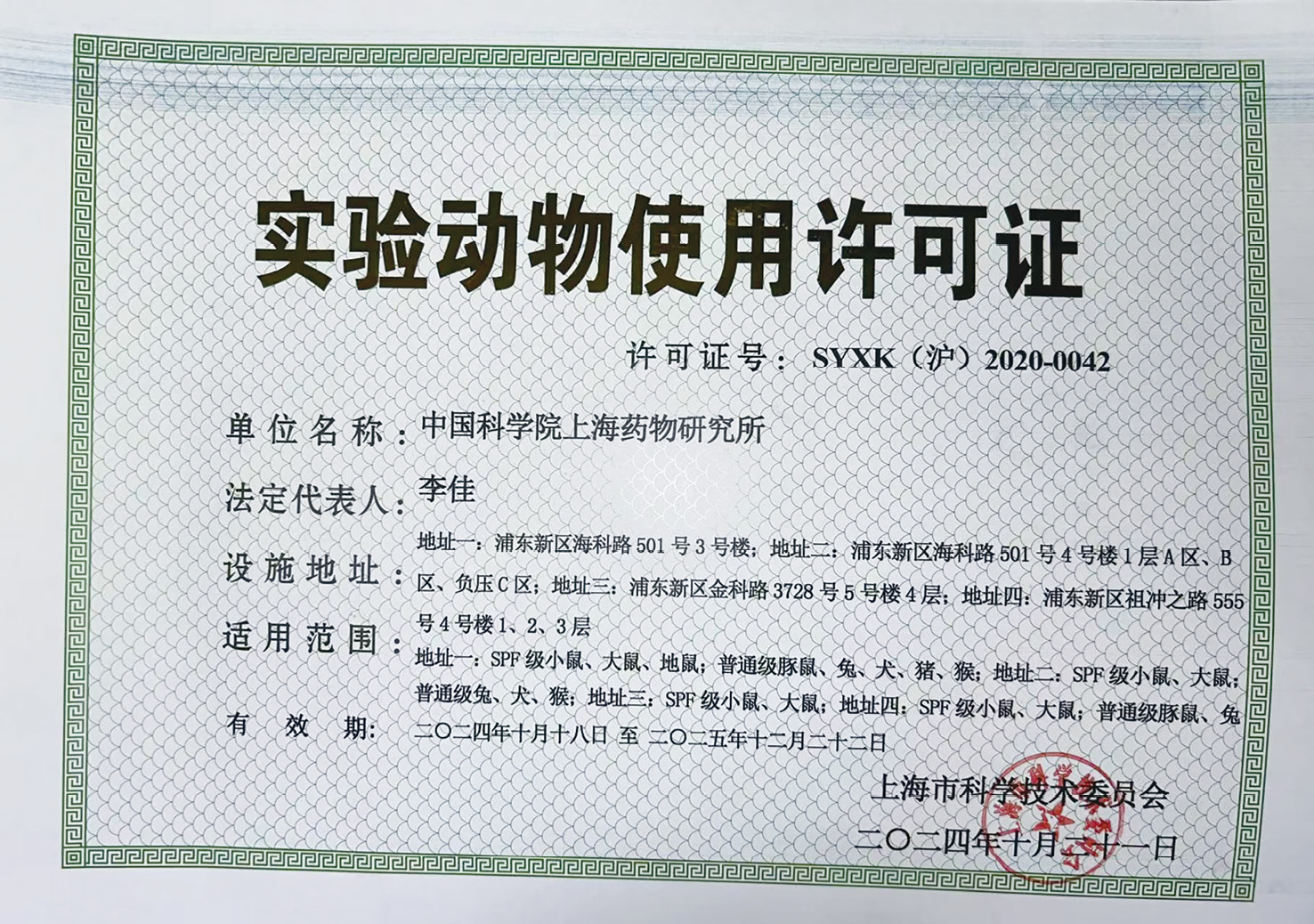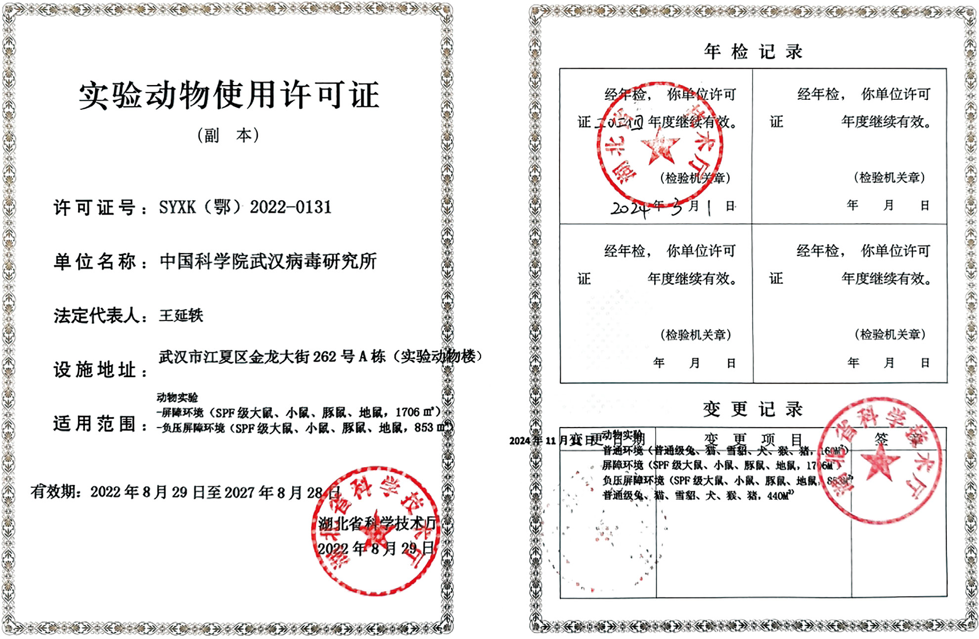 (5)实验动物使用许可证适用范围变更
